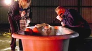 Um Haares BreiteDas erschossene Opfer in der Badewanne und die charakteristische Schusswunde: Grissom (William Petersen) und Catherine (Marg Helgenberger) kennen bereits den Mörder.Bild: © MG RTL D / CBS