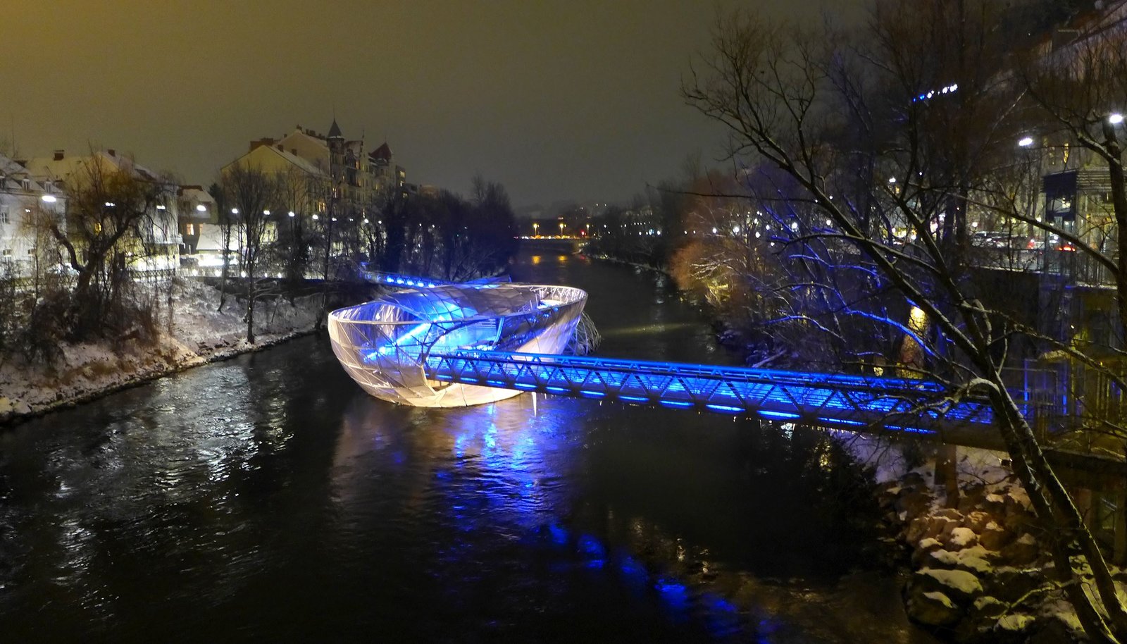 Graz, da will ich hin!Die Murinsel bei Nacht.Bild: © SR/Ute Werner