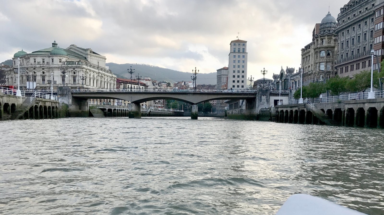 Bilbao, da will ich hin!Die Brücke „Puente del Arenal“, Theater und Altstadt von BilbaoBild: © ZDF und SR/Heike Bredol.