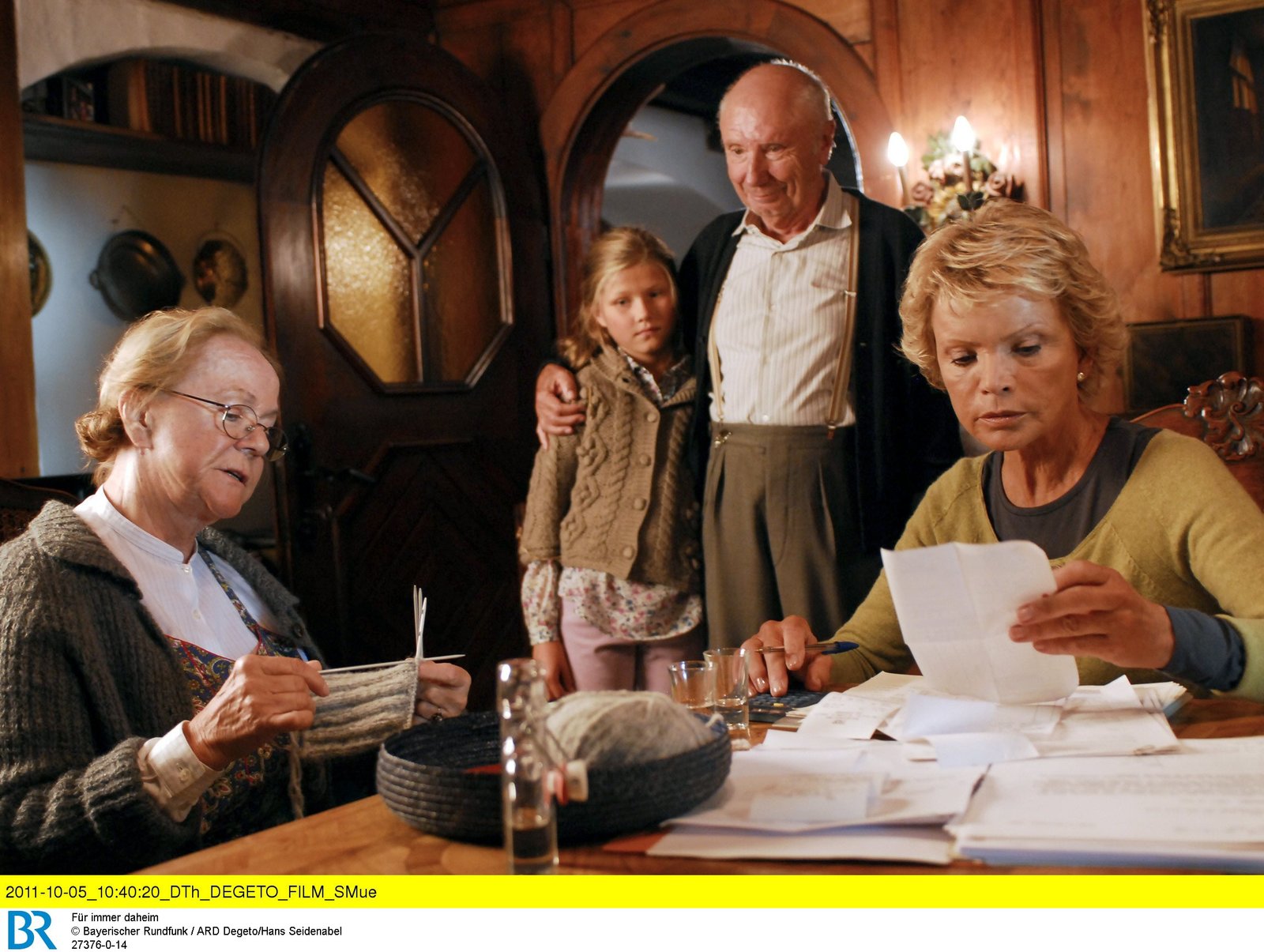 Für immer daheimWährend Theres (Enzi Fuchs, li.) und Maren (Uschi Glas) Rechnungen durchsuchen, hat Maximilian (Horst Sachtleben) die kleine Ausreißerin Simone (Clara Conzen) gefunden.Bild: © ARD Degeto/ARD Degeto/Hans Seidenabel