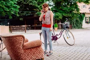 Körbchengröße rotGregor und Fanny machen einen romantischen Fahrrad-Ausflug. Von links: Gregor Brunner (Holger M. Wilhelm) und Fanny Lechner (Katrin Lux).Bild: © BR/Marco Orlando Pichler