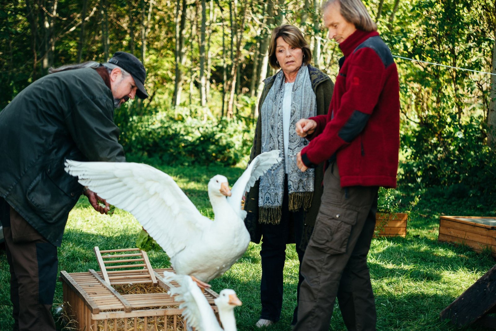 Bamberger aus dem Takt"Wachgänse" sollen den Zirkuswagen vor unerwünschten Besuchern bewahren. Von links: KLD, Rosi Brunner (Brigitte Walbrun) und Sascha Wagenbauer (Eisi Gulp).Bild: © BR/Nadya Jakobs