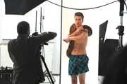 Die heiße LisaPatrick nimmt das Shooting mit Humor – immerhin hat die Schlange ihn zu nichts „verführt". Von Links: Fotograf (Mikail Tufan) und Patrick Westenrieder (Lucas Bauer).Bild: © BR/Marco Orlando Pichler