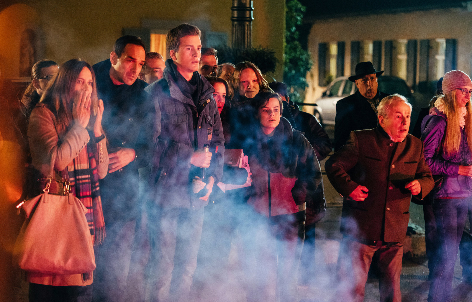 Alles auf AnfangSchockiert müssen die Lansinger mit ansehen, wie die Leuchtbiene den Kiosk in Brand setzt. Von links: Trixi Preissinger (Doreen Dietel), Mike Preissinger (Harry Blank), Patrick Westenrieder (Lucas Bauer), Katharina Benninger (Carina Dengler), Antonia Sturm (Jessica Lenz), KLD und Gerstl (Gerd Lohmeyer).Bild: © BR/Nadya Jakobs