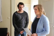 Schlangen-Alarm in LansingVroni wehrt Floris Fragen harsch ab und beruft sich auf ihre Privatsache. Von links: Florian Brunner (Tommy Schwimmer) und Veronika Brunner (Senta Auth).Bild: © BR/Marco Orlando Pichler / Marco Orlando Pichler
