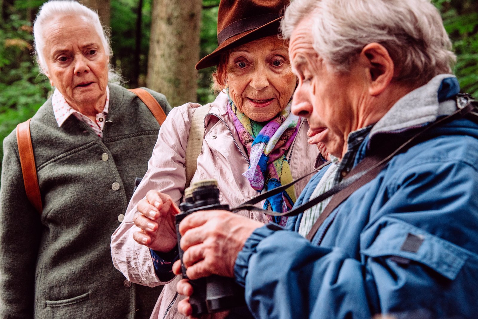 Katzen(ge)jammerTraudl verärgert Theresa, die sie als Alibi für einen Flirt mit Gerstl mitgenommen hat. Von links: Theresa Brunner (Ursula Erber), Traudl (Monika John) und Michael Gerstl (Gerd Lohmeyer).Bild: © BR/Nadya Jakobs