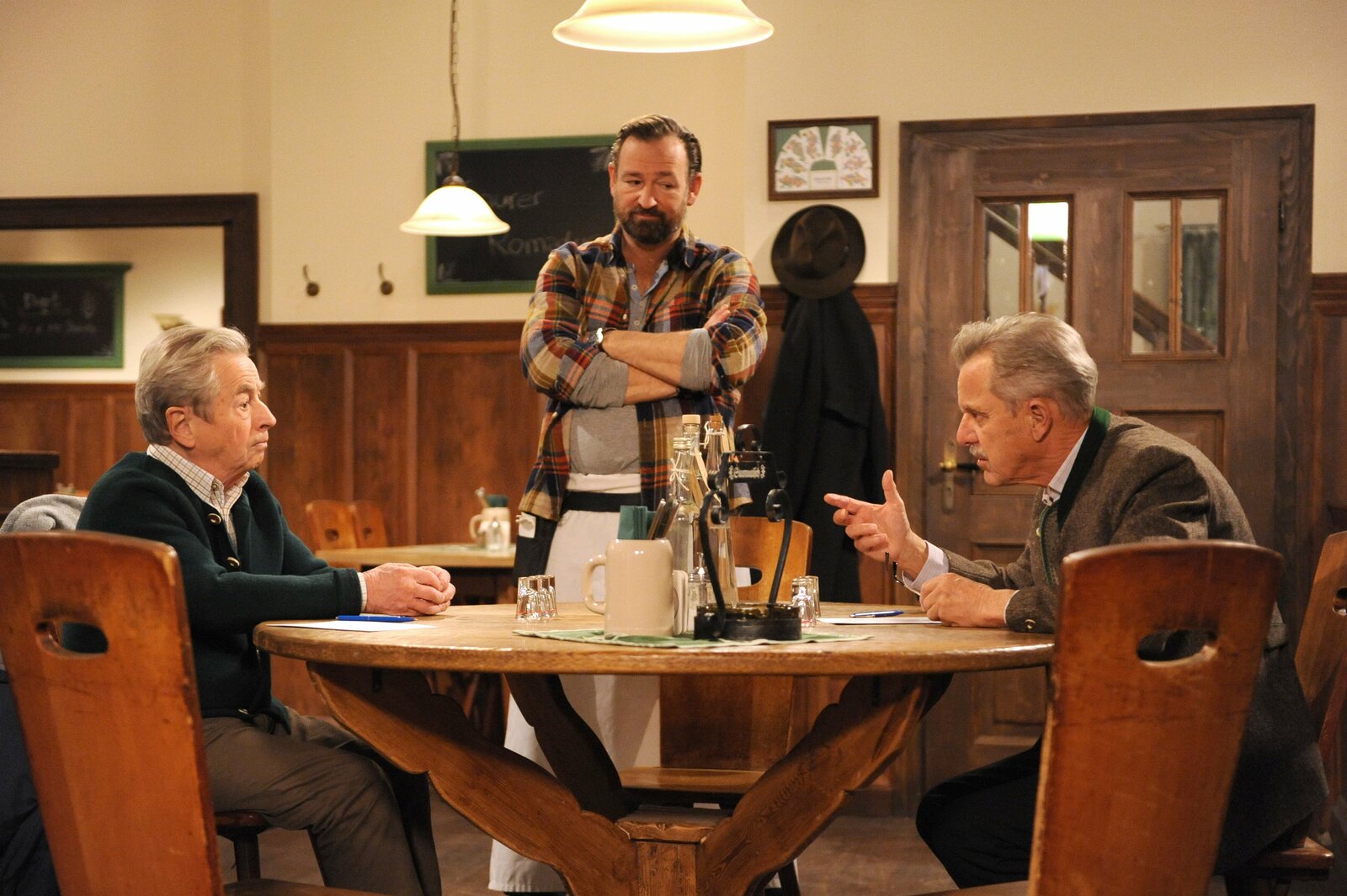 HeimlichkeitenFanny merkt nicht, dass sie ihren Vater mit ihrem Plan für die Hochzeit versehentlich vor den Kopf stößt. Von links: Irmi Lechner (Christa Kern), Hans Lechner (Helmut Berger) und Fanny Lechner (Katrin Lux).Bild: © BR/Marco Orlando Pichler / Marco Orlando Pichler