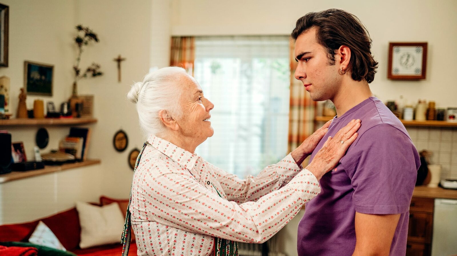 AbschiedsangstFelix (Shayan Hartmann) fällt es schwer, von seiner Uri Theresa (Ursula Erber) Abschied zu nehmen.Bild: © BR/Nadya Jakobs