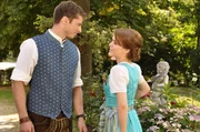 Die große BauernhochzeitNach seiner Entschuldigung können Tom und Kathi wieder entspannter miteinander umgehen. Von links: Tom Stadlbauer (Patrick Jahns) und Katharina Benninger (Carina Dengler).Bild: © BR/Jo Bischoff