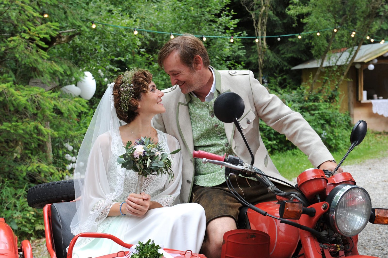 Die WaldhochzeitKatrin Lux (Rolle: Fanny Lechner) und Holger Matthias Wilhelm (Rolle: Gregor Brunner).Bild: © BR/Marco Orlando Pichler / Marco Orlando Pichler