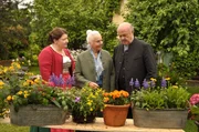 Die Zeit verrinntPfarrer Kurz freut sich auf den Besuch der "Gartenfreunde". Von links: Monika Vogl (Christine Reimer), Theresa Brunner (Ursula Erber) und Pfarrer Kurz (Hans Stadlbauer).Bild: © BR/Jo Bischoff