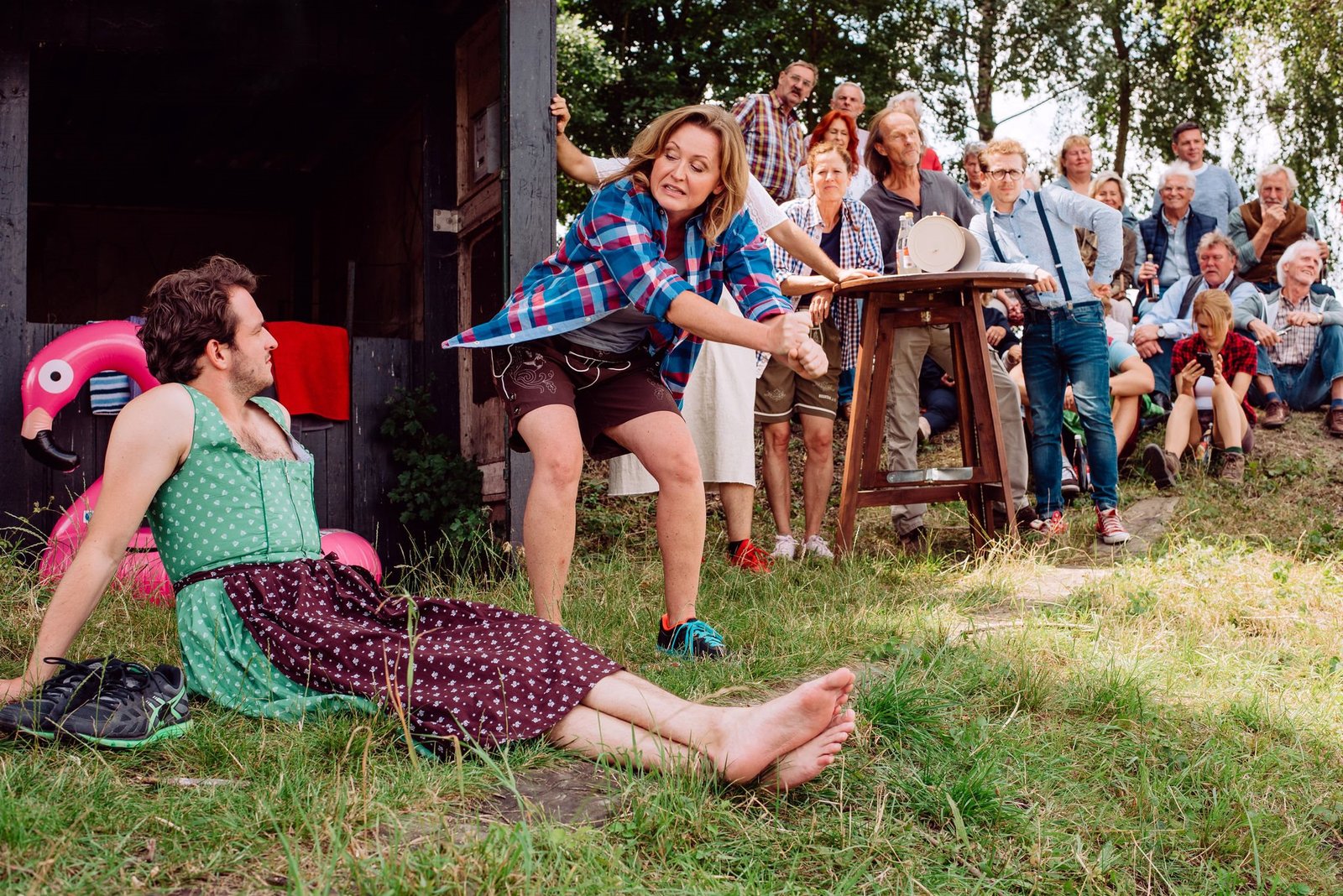 Die Lansinger WasserspieleVeronika sieht angesichts der Dirndl-Improvisation und Florians Müdigkeit für den Wettkampf schwarz. Von links: Florian Brunner (Tommy Schwimmer), Veronika Brunner (Senta Auth), KLD, Annalena Brunner (Heidrun Gärtner), KLD, Alexander "Sascha" Wagenbauer (Eisi Gulp), KLD, Pfarrer Simon Brandl (Ferdinand Schmidt-Modrow), KLD, KLD, KLD, Uschi Kirchleitner (Silke Popp), KLD, Martin Kirchleitner (Hermann Giefer) und KLD.Bild: © BR/Nadya Jakobs / Nadya Jakobs