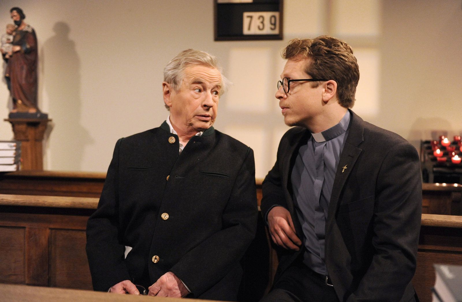 Lügen haben Gerstls BeineGerstl offenbart seinem Neffen wahrheitsgemäß seine "wilde Seite". Von links: Michael Gerstl (Gerd Lohmeyer) und Pfarrer Simon Brandl (Ferdinand Schmidt-Modrow).Bild: © BR/Marco Orlando Pichler
