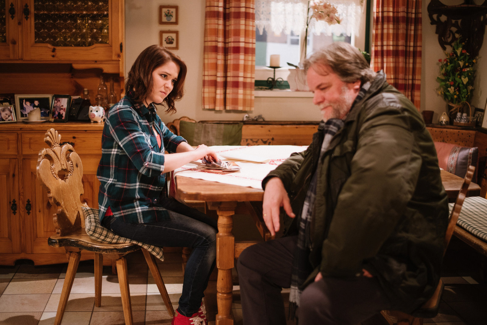 Not oder Lüge?Fanny will keine Flunkereien mehr von Emma hören. Von links: Fanny Lechner (Katrin Lux), Gregor Brunner (Holger M. Wilhelm) und Emma Lechner (Lotta Krebs).Bild: © BR/Constantin Television GmbH/Marco Orlando Pichler