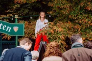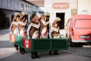 TiefschlägeSarah ruft - traditionsgemäß in Zacherl-Farben - die Kirchweih aus. Von links: Christian Preissinger (Jonathan Gertis, vorne), Michael Gerstl (Gerd Lohmeyer, vorne), Sarah Brandl (Sophie Reiml), Annalena Brunner (Heidrun Gärtner, vorne) und Mike Preissinger (Harry Blank, vorne).Bild: © Nadya Jakobs / BR / BR/Nadya Jakobs