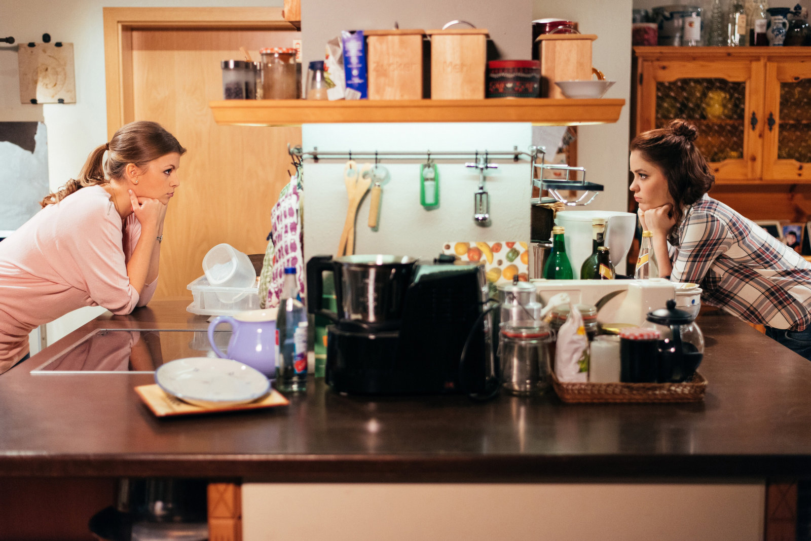 Nur 360 SäckchenAls Nik ihr für den Abend absagt, ist Kathi am Boden zerstört. Von links: Katharina Benninger (Carina Dengler) und Monika Vogl (Christine Reimer).Bild: © BR/Marco Orlando Pichler