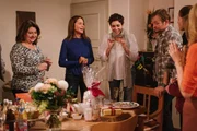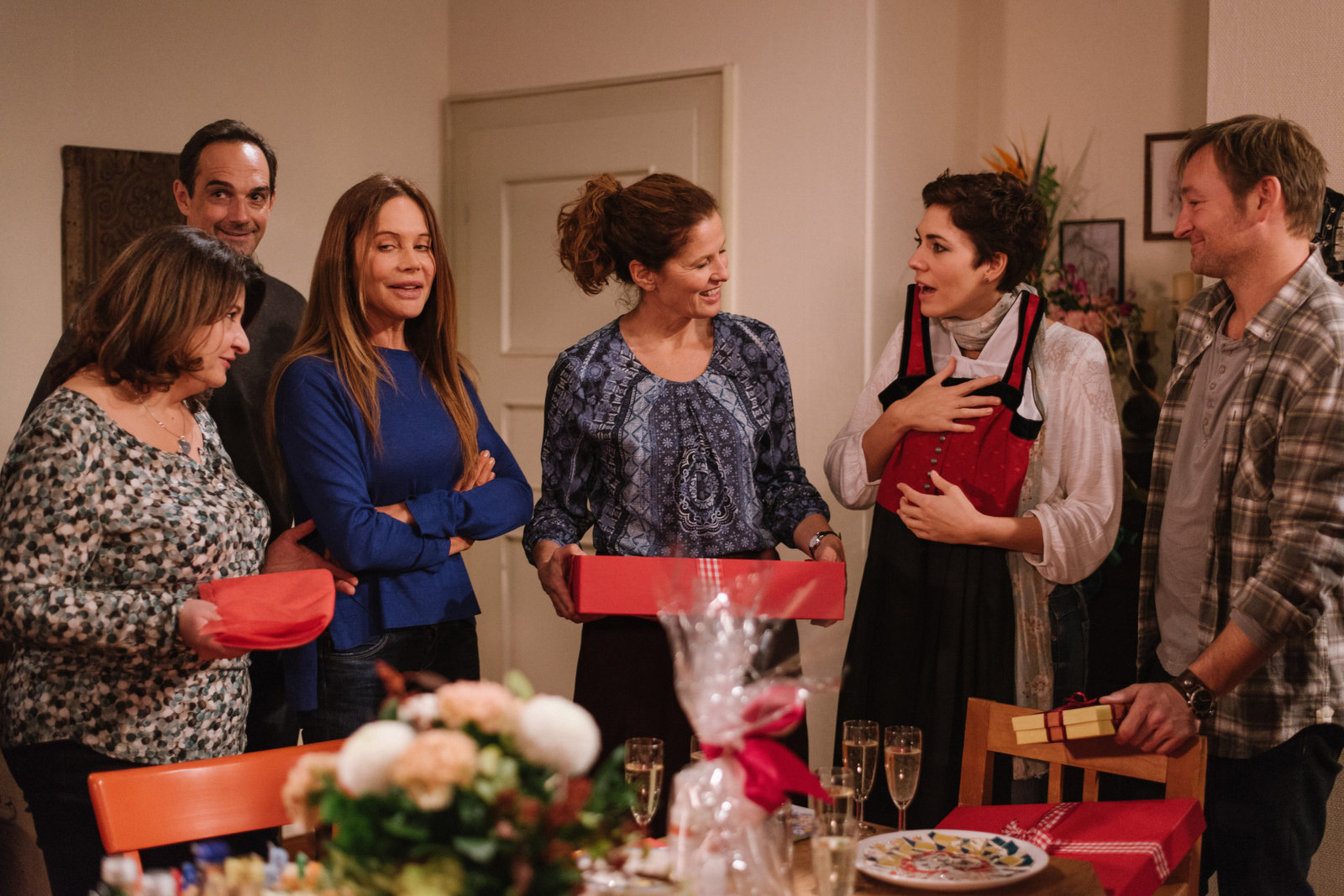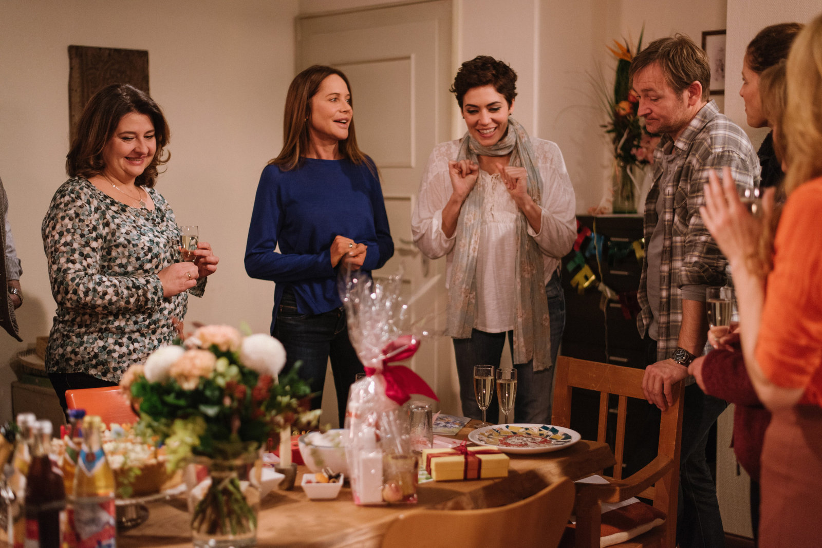 Angst vor dem DahoamFanny freut sich auf ihren Geburtstag mit ihren Freunden. Von links: Monika Vogl (Christine Reimer), Trixi Preissinger (Doreen Dietel), Fanny Lechner (Katrin Lux), Gregor Brunner (Holger M. Wilhelm), Annalena Brunner (Heidrun Gärtner), Veronika Brunner (Senta Auth) und Uschi Kirchleitner (Silke Popp).Bild: © BR/Nadya Jakobs