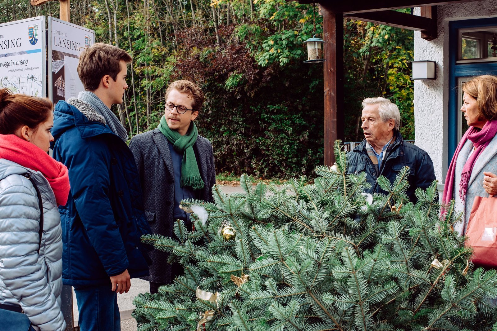 Oh du Fröhliche?Patrick und Kathi sind gefordert, als Gerstl einen Weihnachtsbaum-Ersatz will. Von links: Katharina Benninger (Carina Dengler), Patrick Westenrieder (Lucas Bauer), Pfarrer Simon Brandl (Ferdinand Schmidt-Modrow), Michael Gerstl (Gerd Lohmeyer) und Rosi Kirchleitner (Brigitte Walbrun).Bild: © BR/Nadja Jakobs