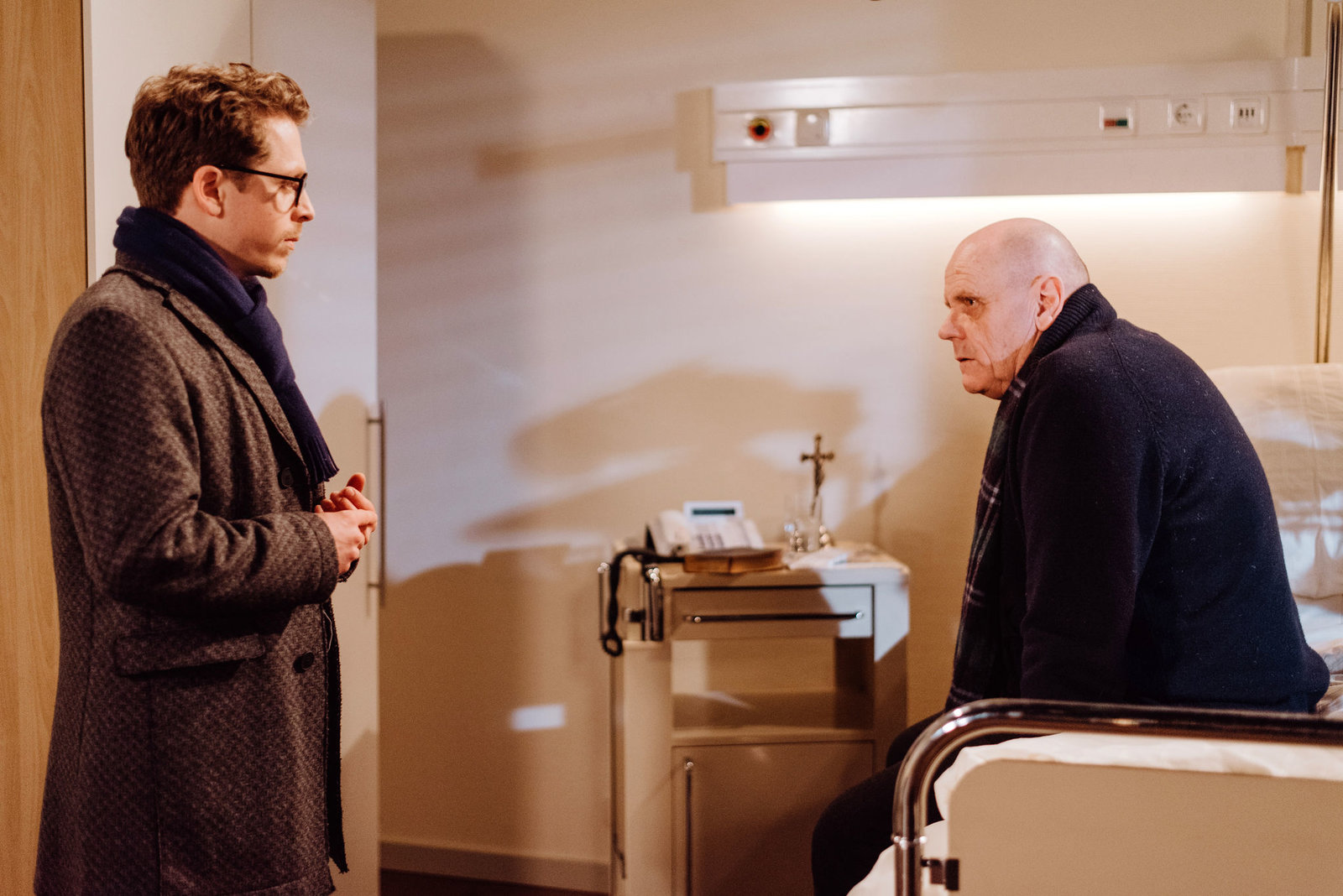 Brandls große AufgabeBrandl ist bestürzt, als Ries ihm erklärt, dass er sein Schicksal akzeptiert hat. Von links: Pfarrer Simon Brandl (Ferdinand Schmidt-Modrow) und Pfarrer Ries (Anton Grünbeck).Bild: © BR/Nadya Jakobs
