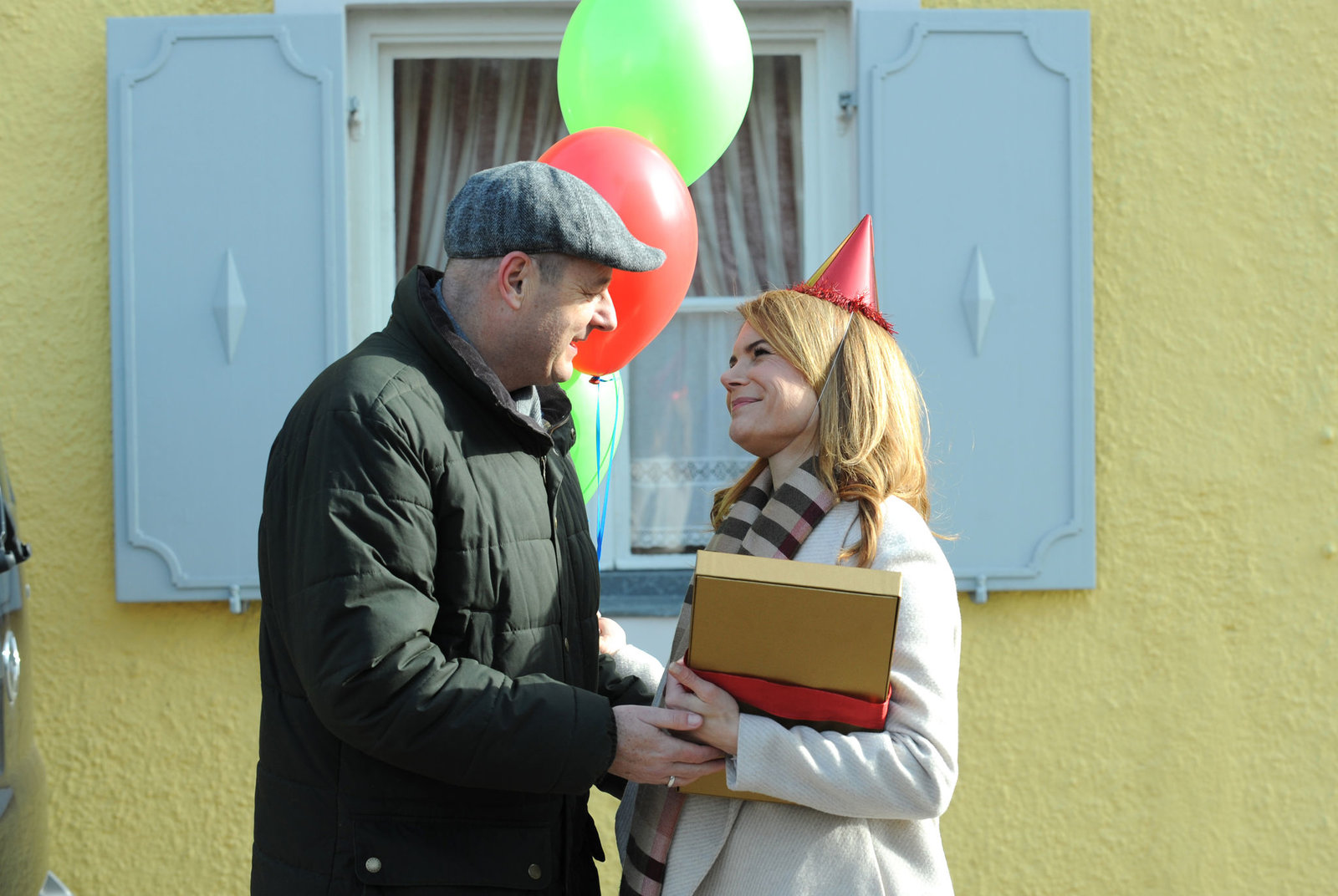 Hubert in der 50er ZoneHubert ist tief gerührt, als ihn Uschi trotz seiner unmöglichen Aktion liebevoll empfängt. Von links: Hubert Kirchleitner (Bernhard Ulrich) und Uschi Kirchleitner (Silke Popp).Bild: © BR/Marco Orlando Pichler