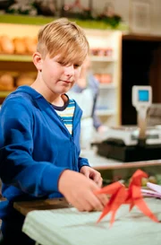 Sag einfach "Ja"Zur Strafe verdonnert Pfarrer Brandl Pauli (Dennis Hofmuth) dazu, 20 Origami-Tiere kostenlos für die Kitakinder zu Weihnachten zu falten.Bild: © BR/Nadya Jakobs