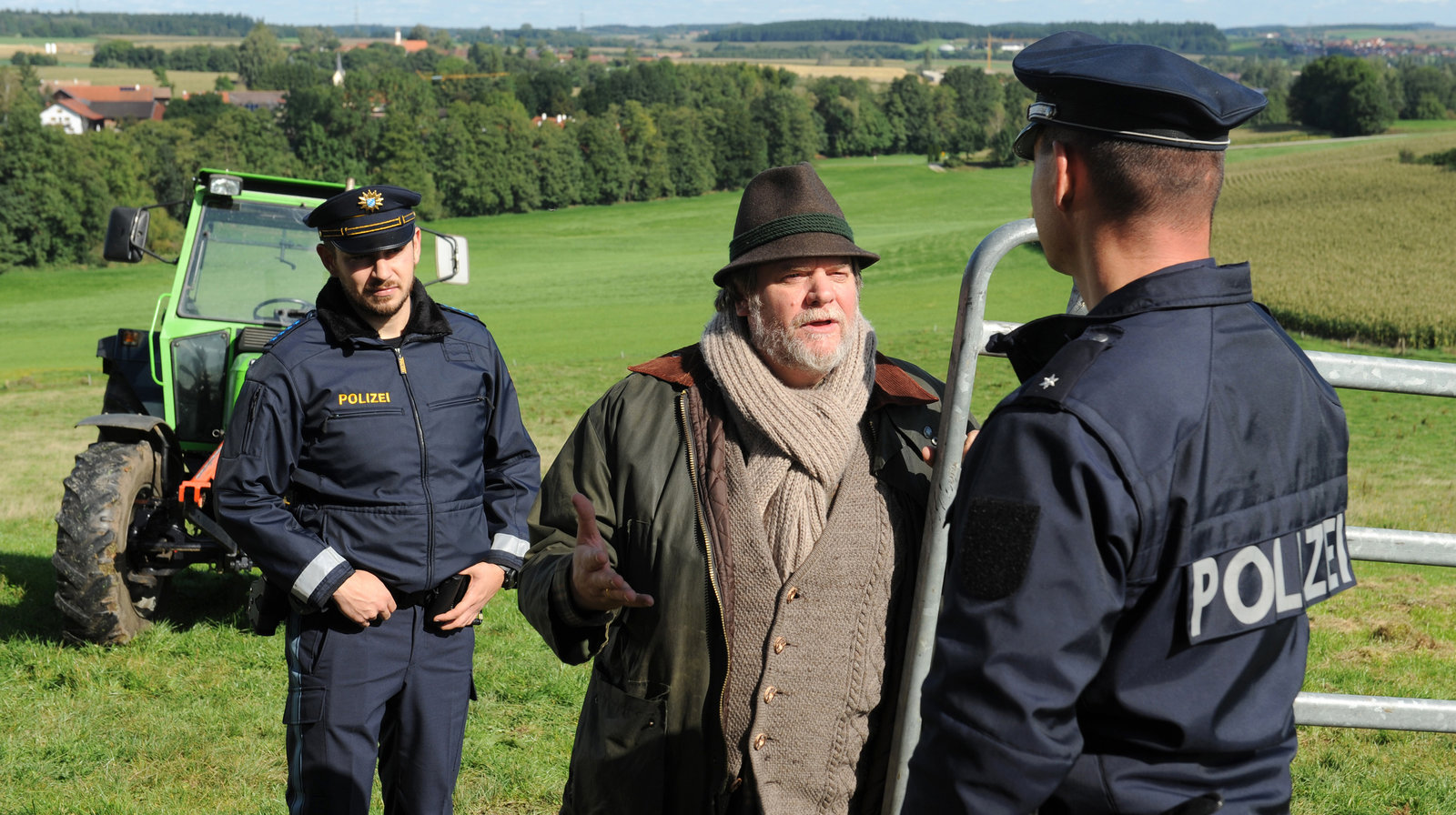 ViehdiebstahlStadlbauer drängt die Polizei zur mehr Engagement bei ihren Ermittlungen bezüglich des Rinderdiebstahls. Von links: KLD, Benedikt Stadlbauer (Andreas Geiss) und KLD. Weiteres Bildmaterial erhalten Sie unter www.br-foto.de.Bild: © BR/Marco Orlando Pichler