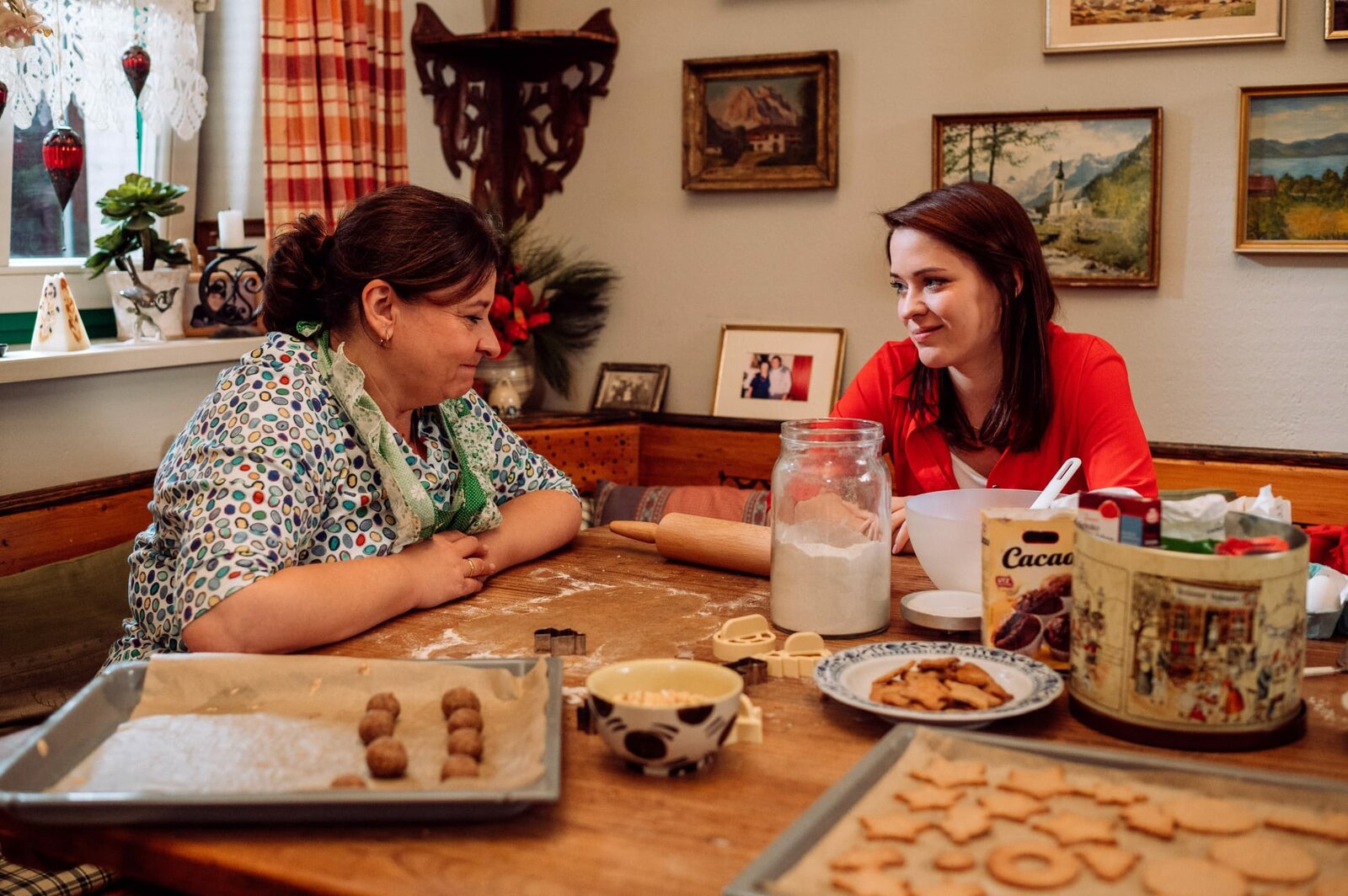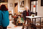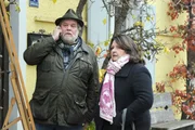 Ein entbranntes HerzGerstl will Rosi nicht enttäuschen und will schon den nächsten Teller malen. Von links: Landfrau Gundi Wittmann (Helga Januschkowetz) und Michael Gerstl (Gerd Lohmeyer).Bild: © BR/Nadya Jakobs