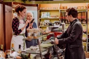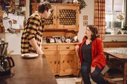 Kleider machen MissverständnisseAnnalena freut sich, weil ihr Verkupplungs-Versuch zwischen Daniel und Hanni funktioniert hat. Von links: Daniel (Harald Helfrich) und Hanni (Angelika Sedlmeier).Bild: © BR/Nadya Jakobs / Nadya Jakobs