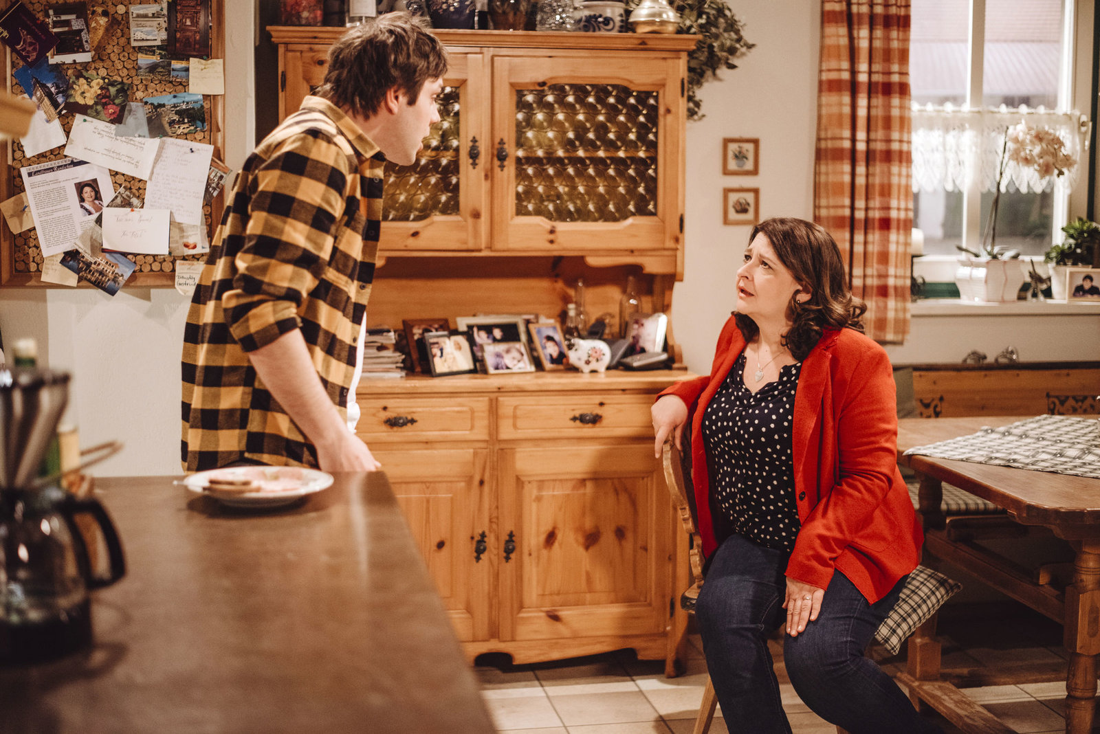 Monis SchuldMoni (Christine Reimer) steht unter Druck, als sich die Lage um die Steuerhinterziehung zuspitzt. Mit Stadlbauer (Andreas Geiss).Bild: © Nadya Jakobs / BR / BR/Nadya Jakobs