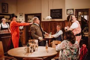 Sehnsucht nach AfrikaIm Brunnerwirt wird der letzte Tag des Channukafestes mit den neu gewonnenen Freunden gefeiert. Von links: Gregor (Markus Baumeister), Jakob (Moisej Bazijan), Theresa (Ursula Erber), Sarah (Sophie Reiml), Rebecca (Julia Schneider), Rosi (Brigitte Walbrun) und Sascha (Eisi Gulp).Bild: © Marco Orlando Pichler / BR / BR/Marco Orlando Pichler