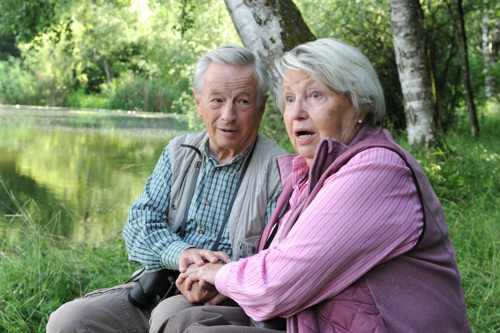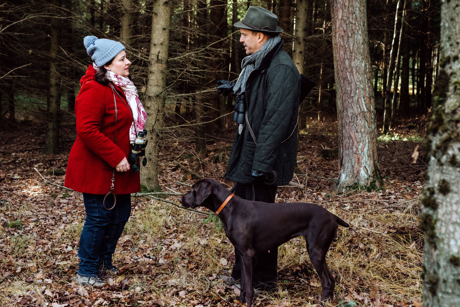 Wo ist Bruni?Moni ist erleichtert, dass Bruni wohl noch lebt – doch die Gefahr ist nicht gebannt. Von Links: Monika Vogl (Christine Reimer) und Förster Trapp (Andreas Bittl).Bild: © BR/Marco-Orlando Pichler