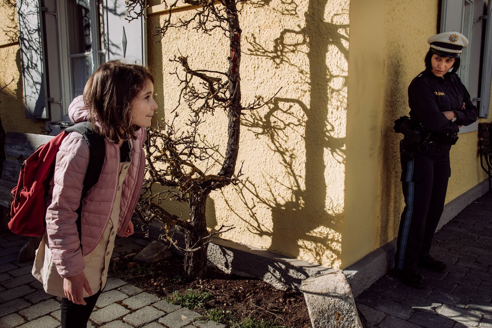 Du, i und die andereAngeblich interessiert sich die kleine Emily (Celina Stautner, KLD, links) für die Polizeiarbeit von Josephine (Mira Mazumdar).Bild: © Nadya Jakobs / BR / BR/Nadya Jakobs