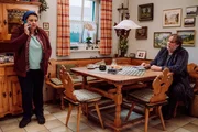 Wenn zwei sich sorgen...Uschi beschließt, den Großteil von Franzis Bildern notgedrungen ins Altpapier zu entsorgen. Von links: Uschi Kirchleitner (Silke Popp) und Rosi Kirchleitner (Brigitte Walbrun).Bild: © BR/Nadya Jakobs / Nadya Jakobs