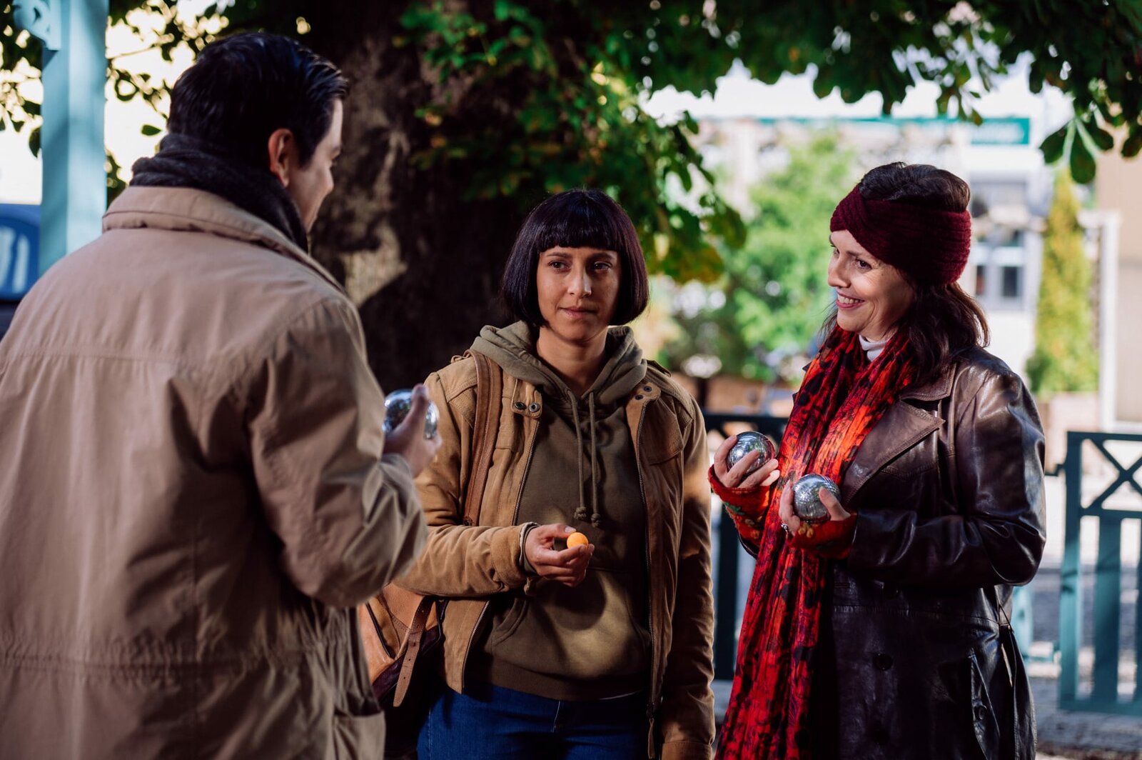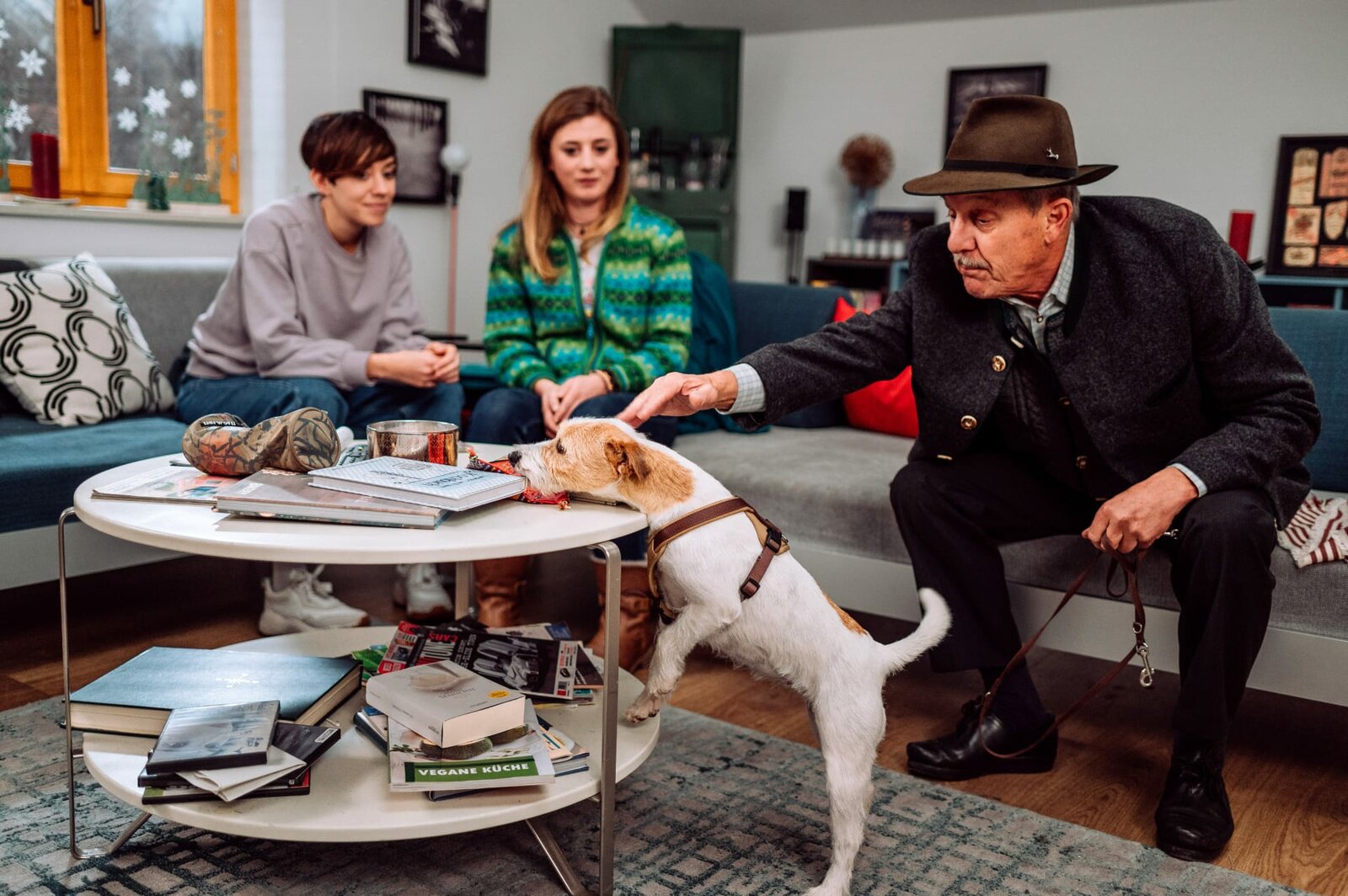 Ein mutiger SchrittSchattenhofer (Werner Rom) sucht eine Bleibe für Bruni während seines Karibik-Urlaubs. Mit Jenny (Laura Tashina, links) und Sarah (Sophie Reiml, Mitte).Bild: © Nadya Jakobs / BR / BR/Nadya Jakobs
