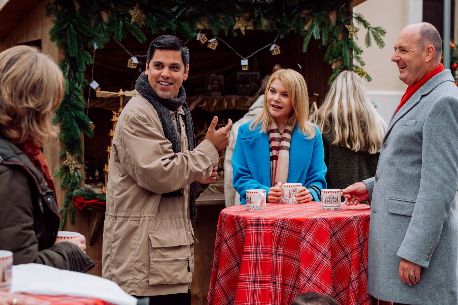 Geheimer RetterPfarrer Burman ist überzeugt, dass seine Baierisch-Kenntnisse schon große Fortschritte gemacht haben. Von links: Veronika (Senta Auth), Pfarrer Burman (Daniel Popat), Uschi (Silke Popp) und Hubert (Bernhard Ulrich).Bild: © Nadya Jakobs / BR / BR/Nadya Jakobs