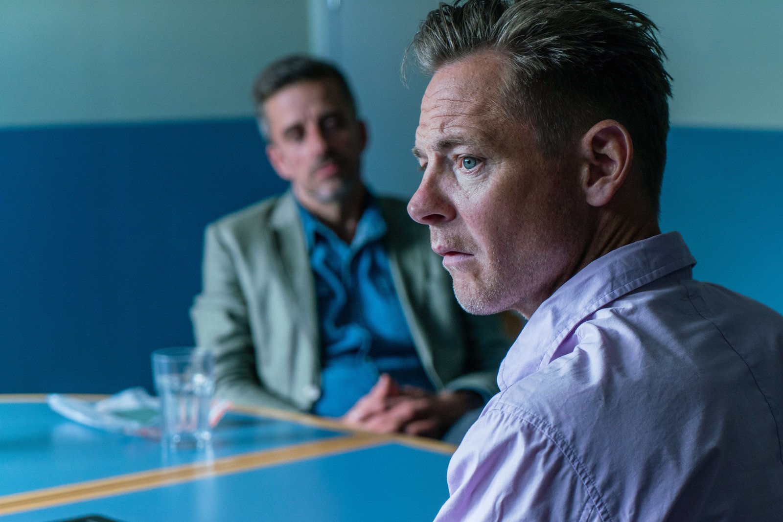 HeiratsschwindlerErik Östenfeldt (Paw Henriksen), ein Mitarbeiter der Lottozentrale, wird im Polizeirevier von Polizist Flemming Torp (André Babikian) zu dem Mordfall verhört.Bild: © ZDF und Mike Kollöffel./Mike Kollöffel