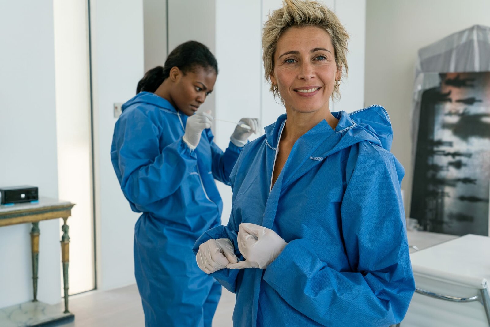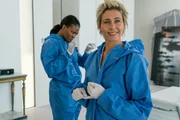 Pfusch am BauForensikerin Marianne (Laura Drasbeak) untersucht am Tatort gemeinsam mit Kollegin Lina (Diêm Camille G.) die Spuren.Bild: © ZDF und Mike Kollöffel./Mike Kollöffel