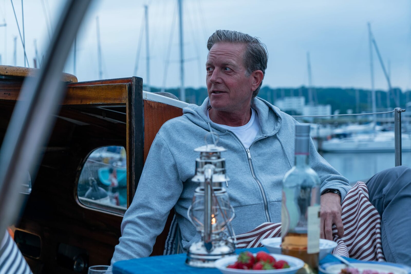 Die Tote am StrandAls Dan (Peter Mygind) seine Frau beim Fremdgehen erwischt, zieht er kurzerhand auf sein Boot.Bild: © ZDF und Mike Kollöffel./Mike Kollöffel
