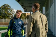 Mörderisches FoulPolizist Flemming (André Babikian) spricht mit Mitgliedern des Vereins und sucht nach Zeugen der Tat.Bild: © ZDF und Mike Kollöffel./Mike Kollöffel