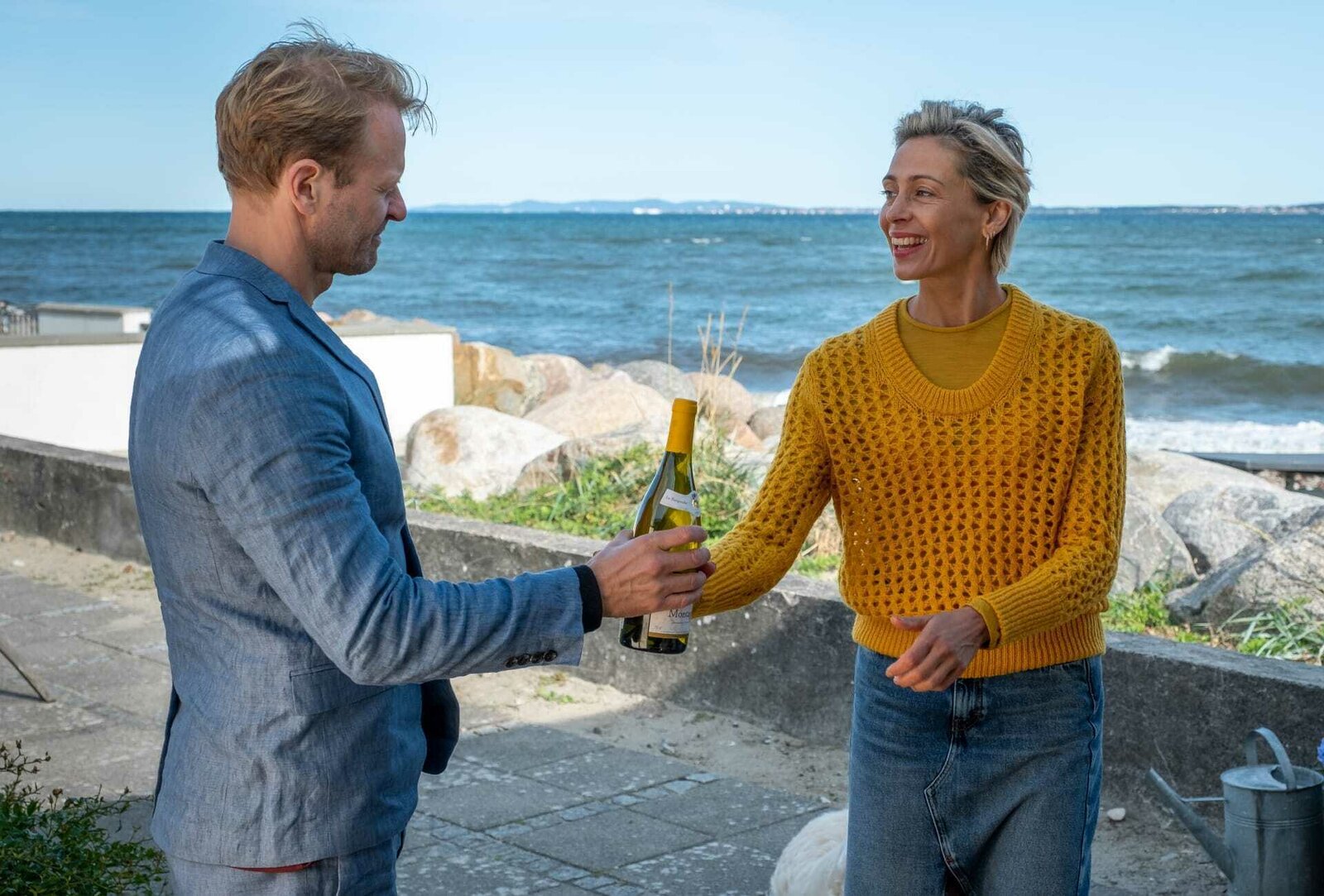 Die Tote am StrandPolizist Dan Sommerdahl (Peter Mygind) und seine Frau Marianne (Laura Drasbaek) feiern ihren 25. Hochzeitstag.Bild: © ZDF und Mike Kollöffel./Mike Kollöffel