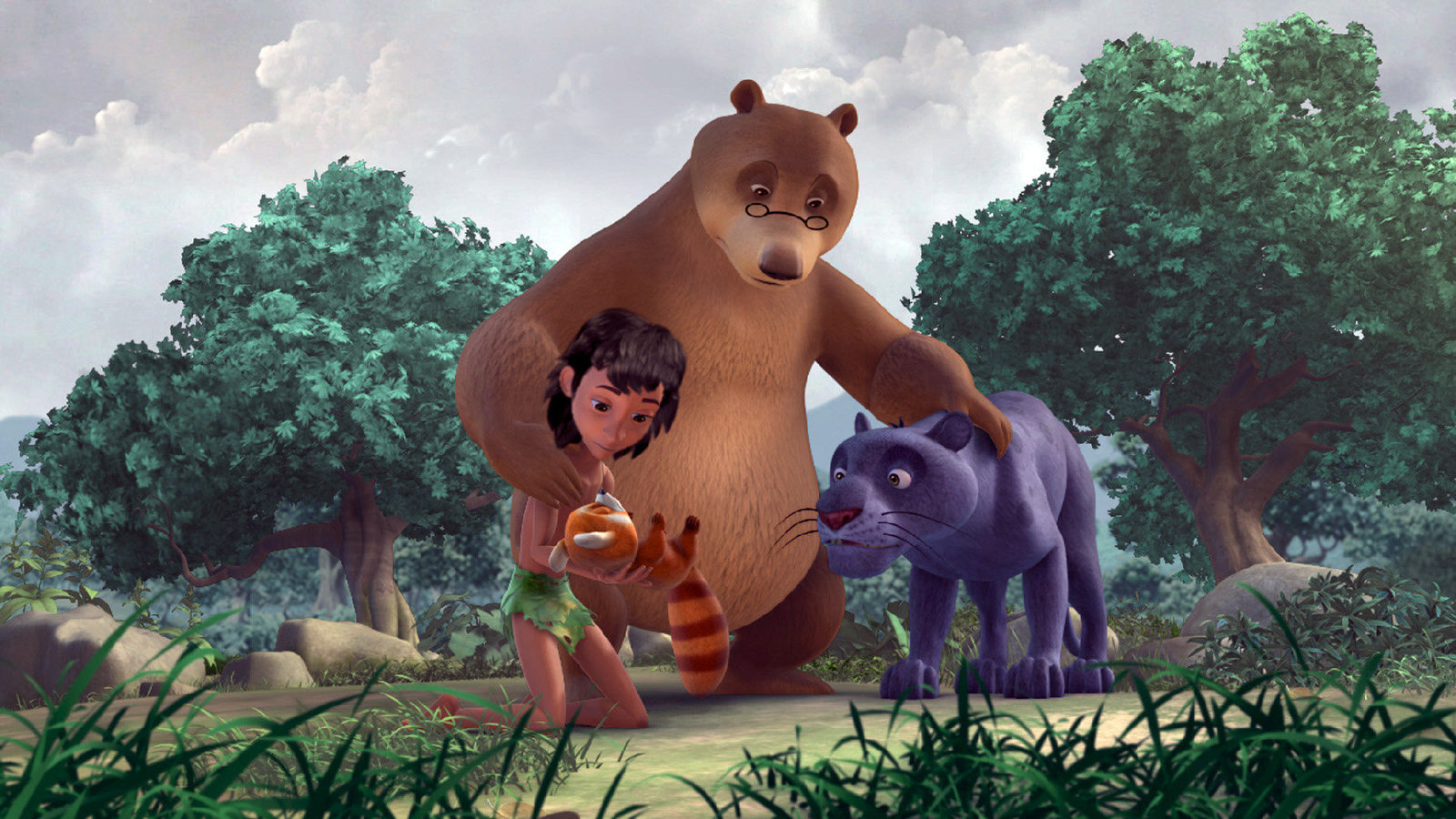 Der WunschbaumTabaqui (r.) soll Balu (l.) und Baghira (M.) zum Wunschbaum führen.Bild: © ZDF und DQ Entertainment