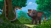 Der SternensteinDer kleine Elefant Appu will beweisen, dass er erwachsen ist. Darum wirft er den Sternenstein immer wieder in den Himmel. Die Elefanten glauben nämlich, wenn der Sternenstein oben im Himmel bleibt, heißt das, man ist erwachsen. Dabei sollte man aber Kaa, die Schlange nicht stören.Bild: © ZDF und DQ Entertainment