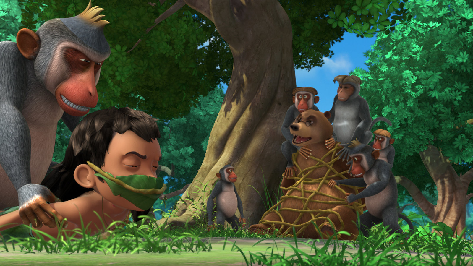 Die verlorene StimmeMascha (l.) und ihre Affen haben die Herrschaft über den Dschungel übernommen. Mascha fühlt sich als die neue Königin des Dschungels, jetzt wo keiner mehr Angst vor Shir Khan hat.Bild: © ZDF und (c) DQ Entertainment