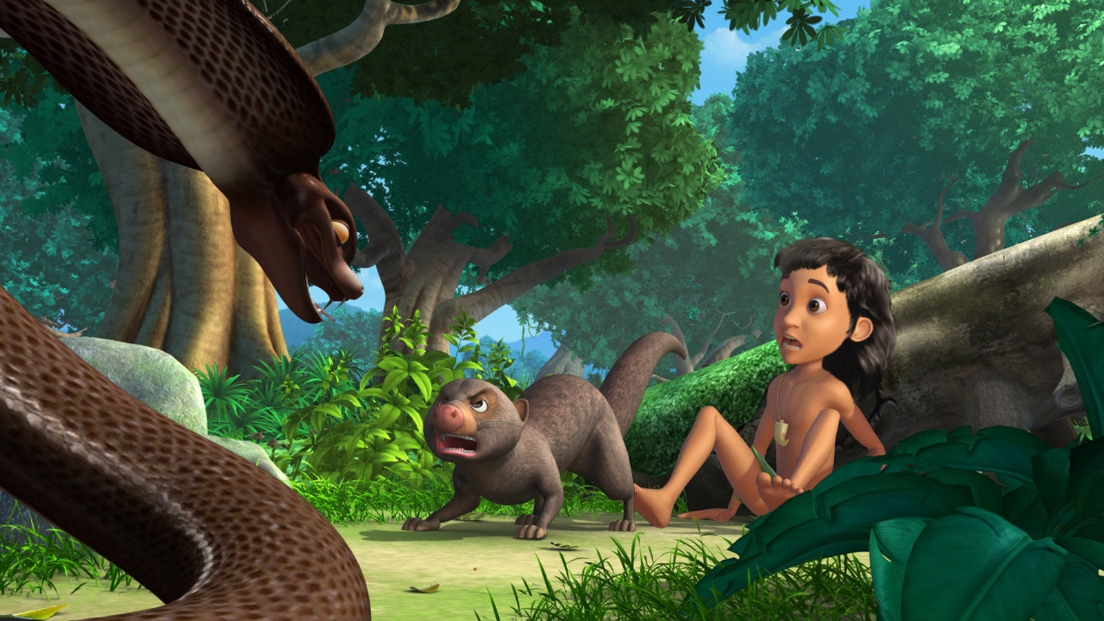 EierdiebeZum Glück kommt Rikki Tikki Tavi im rechten Augenblick. So kann er Mogli im Kampf gegen die Kobra unterstützen.Bild: © ORF