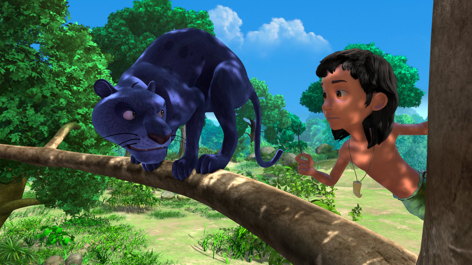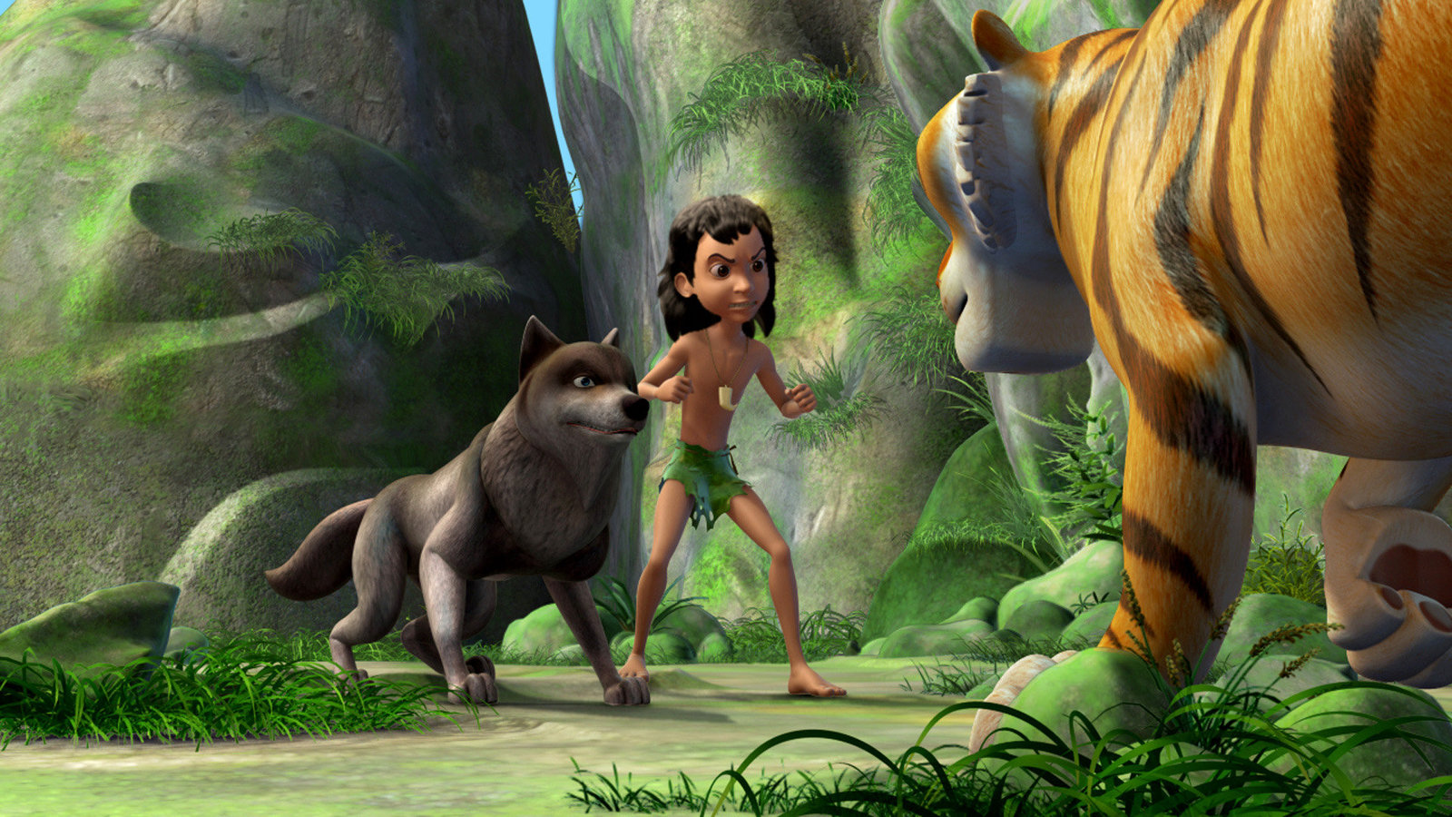 Die gestohlene HalsketteShir Khan hat Mogli erwischt! Hoffentlich kommt schnell Hilfe.Bild: © ZDF und (c) DQ Entertainment.