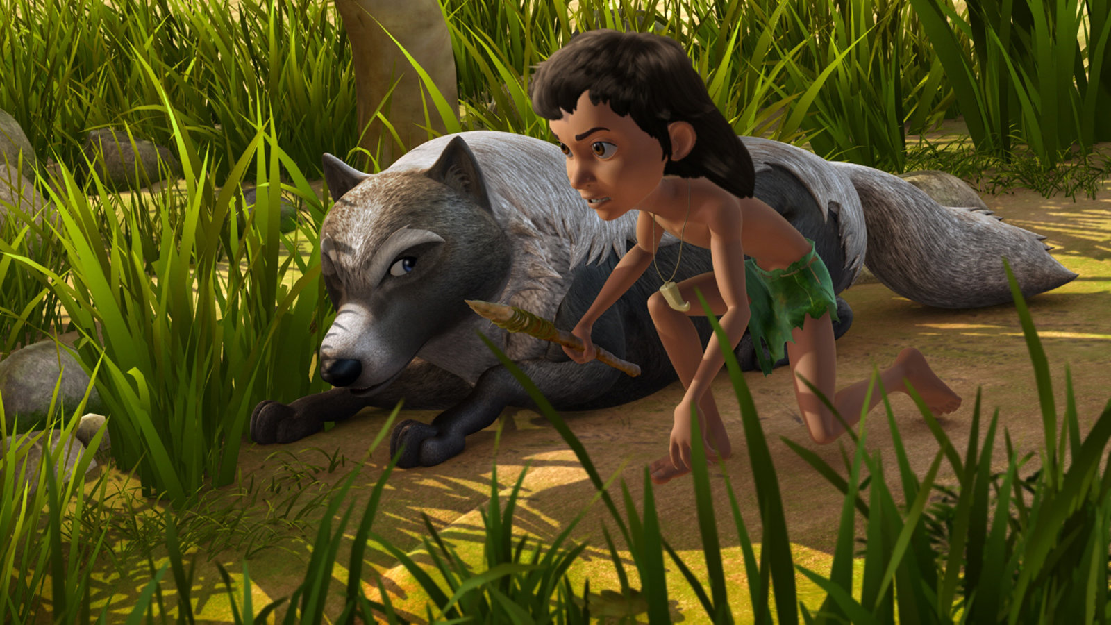 Der BambusturmAkela, der Wolfsrudelführer möchte, dass Mogli die Jagdprüfung ablegt.Bild: © ZDF/ZDF/DQ Entertainment