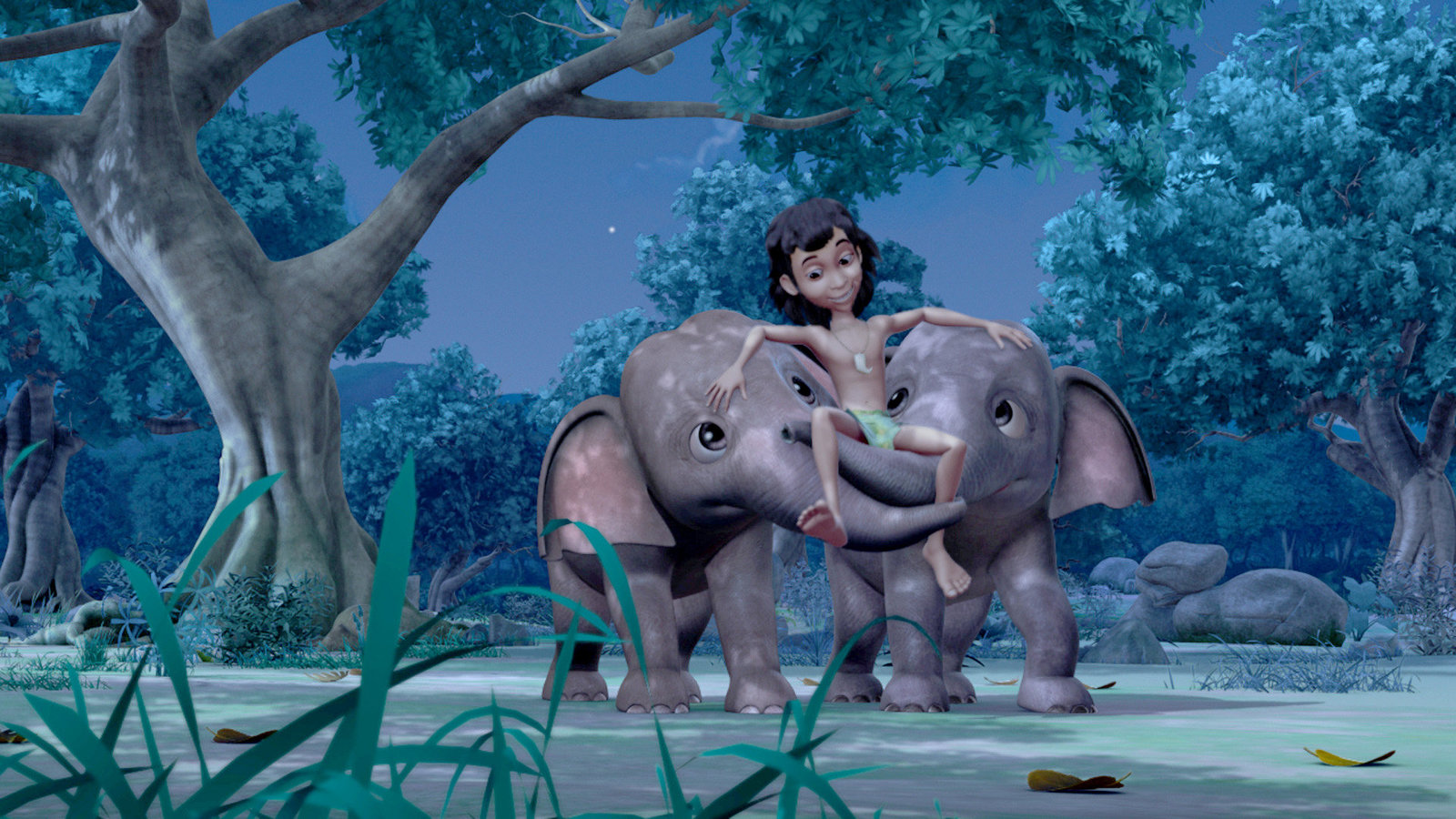 Mogli, der WolfsjungeMogli wurde mit einem vermeintlichen Auftrag von Phaona, dem listigen Wolf, zur Elefantenlichtung geschickt. Dort trifft er die Elefantengeschwister Hita und Appu.Bild: © ORF eins