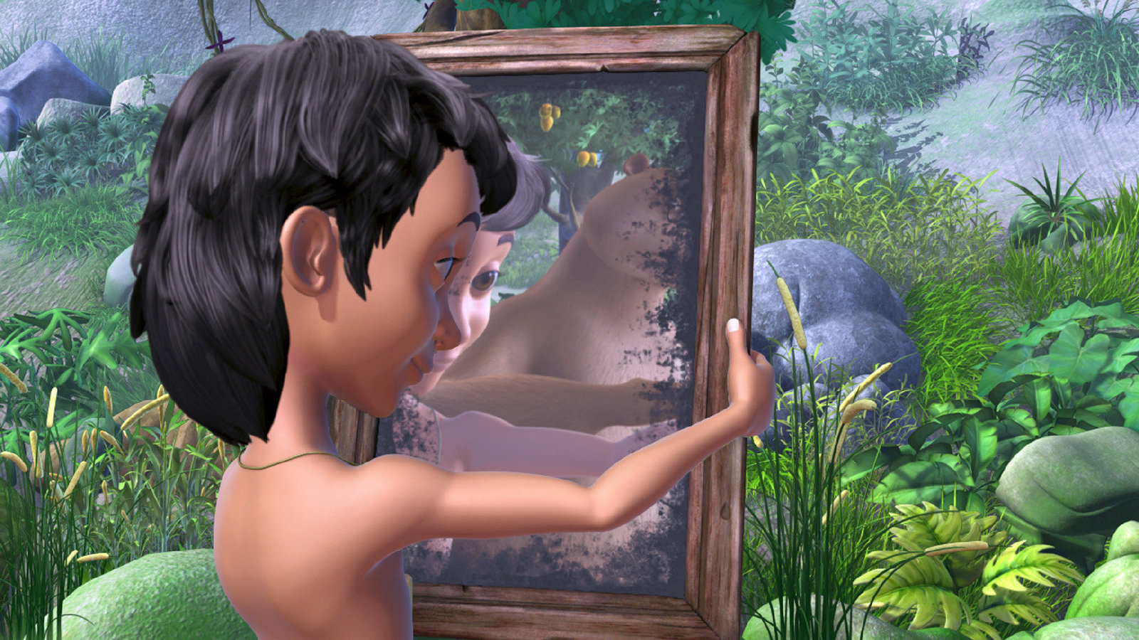 Der doppelte MogliMogli findet am Fluss etwas, in dem er sich selbst sehen kann.Bild: © ORF