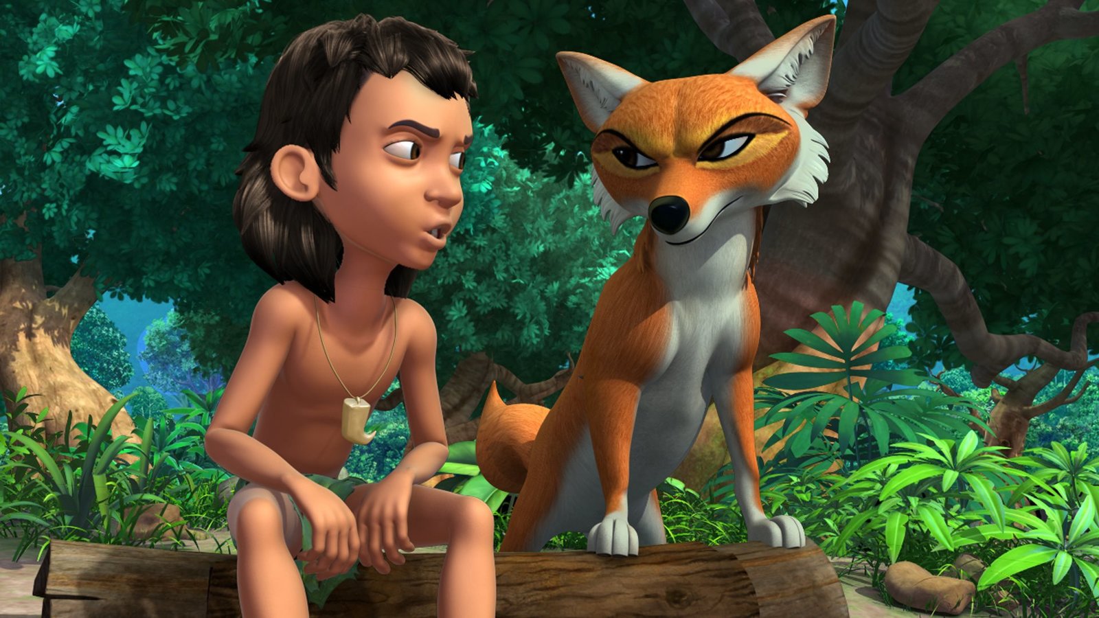 Der WunschbaumMogli (l.) ist durch die Jagdprüfung gefallen und ist traurig und sauer. Tabaqui (r.) nutzt Moglis Verzweiflung aus und erzählt ihm von einem Wunschbaum.Bild: © ZDF und DQ Entertainment