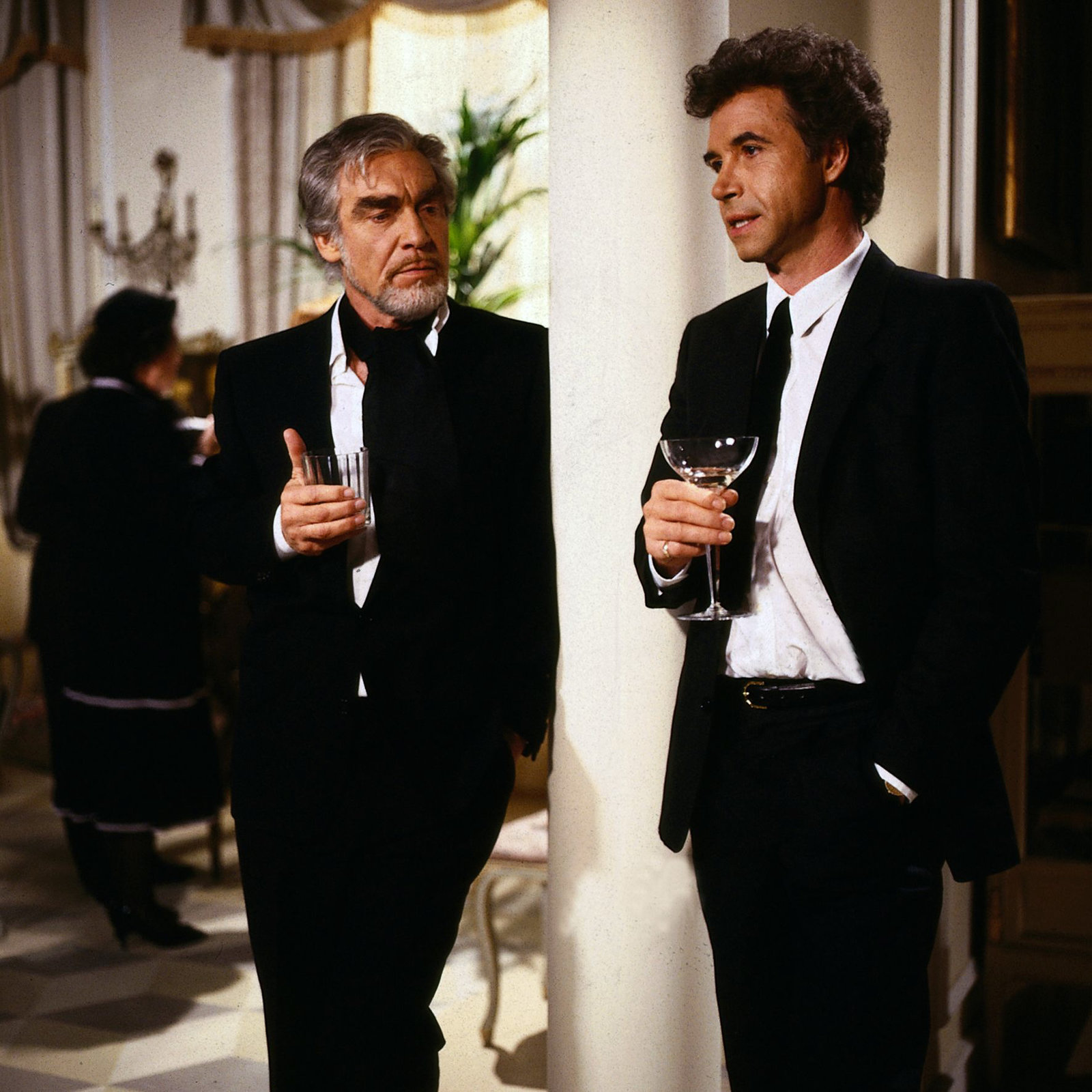 Die schwarze Rose2. Die Beerdigung des Grafen hat stattgefunden. Die Familie ist ins Haus zurückgekehrt. In einem Gespräch zwischen Thomas Graf von Guldenburg (Wolf Roth, li.) und seinem Onkel Max von Guldenburg (Jürgen Goslar, re.), der als Wissenschaftler tätig ist, ist die wirtschaftliche Situation das zentrale Thema.Bild: © ZDF/NDF